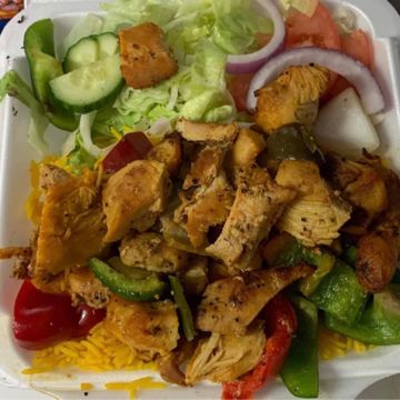 Choice of Meat: Chicken, Lamb, Falafel. Served with Soda.